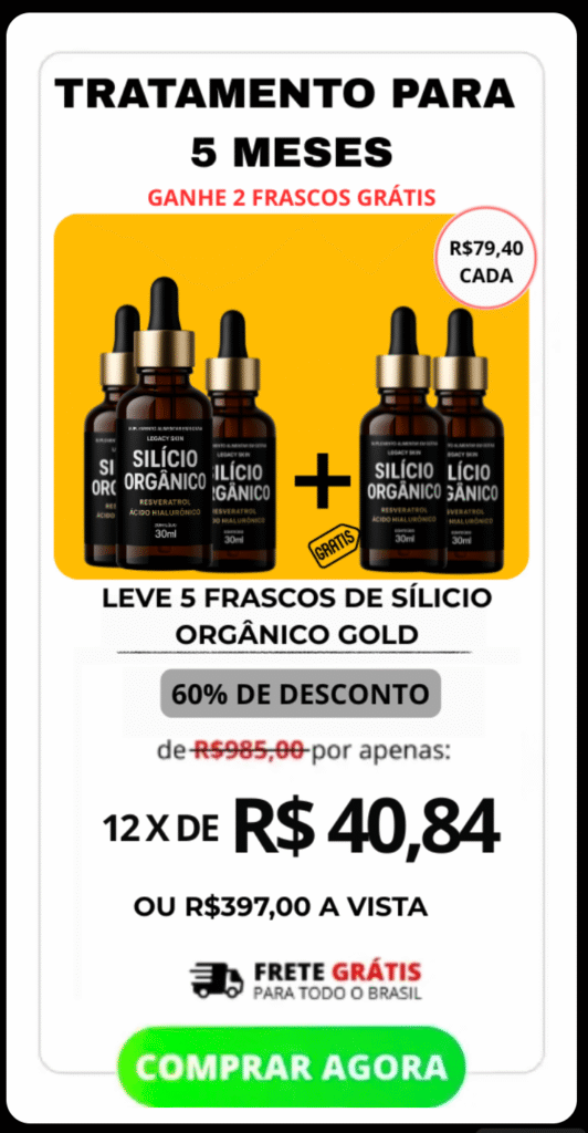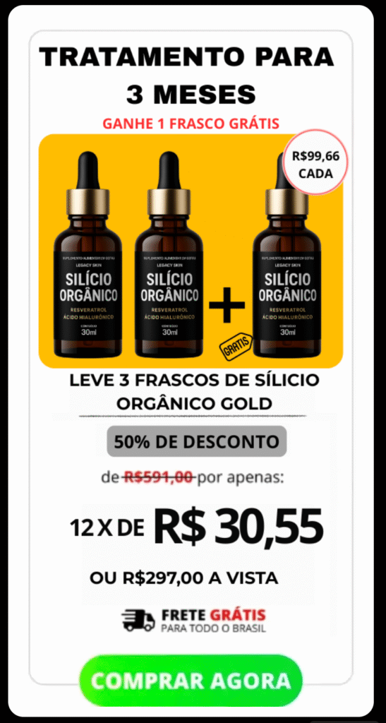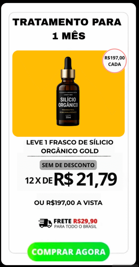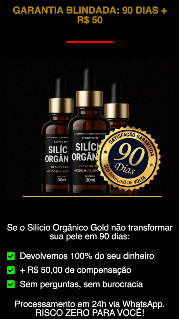 Adquira o produto hoje e seja protegido automaticamente pela Garantia Incondicional Silício Orgânico Gold, onde você tem 90 dias para testar nosso produto sem risco algum. Isso significa que se você não estiver completamente satisfeita com os resultados do tratamento, Reembolsaremos 100% do seu dinheiro na hora. Não há riscos, apenas resultados eficazes.